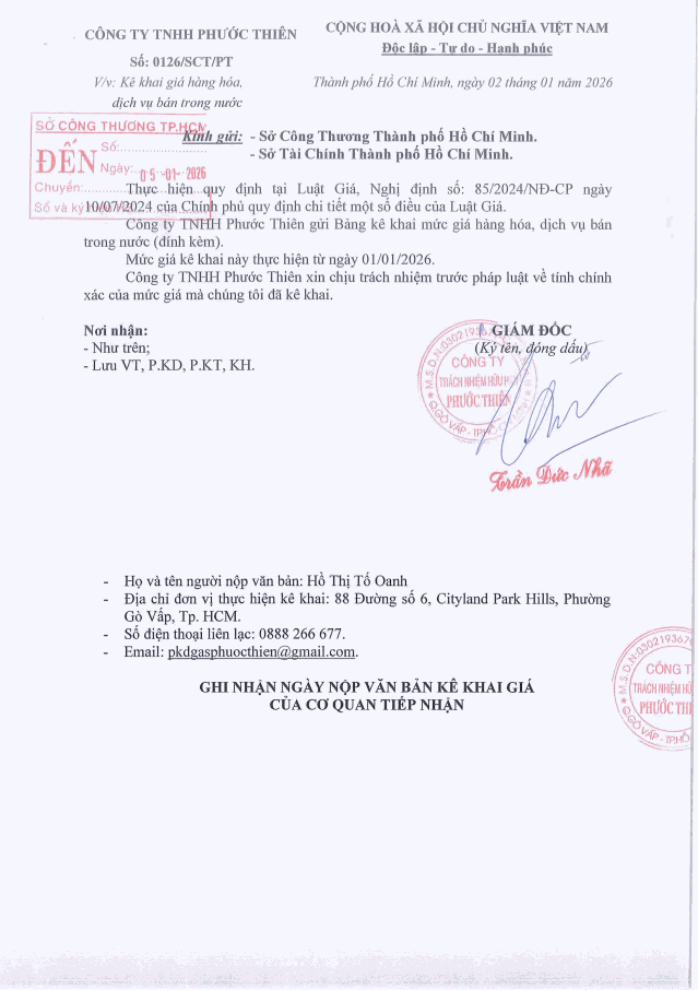 Vietgas Holding - Công ty TNHH Phước Thiên, trân trọng thông báo: